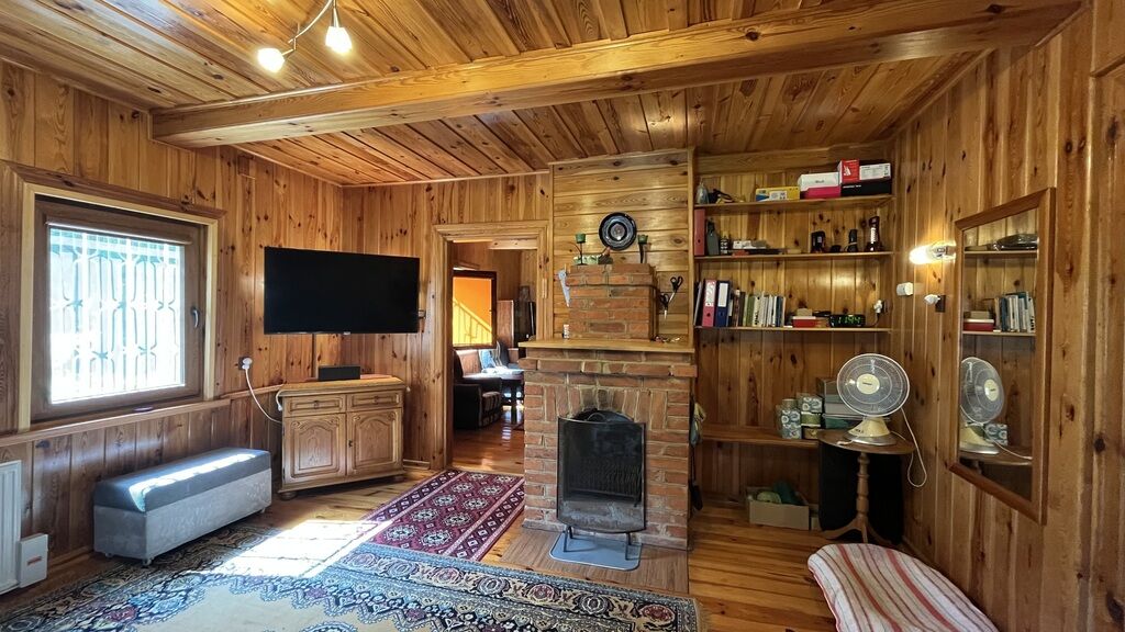 pomieszczenie łazienki. W jednym z pokoi jest kominek w pełni